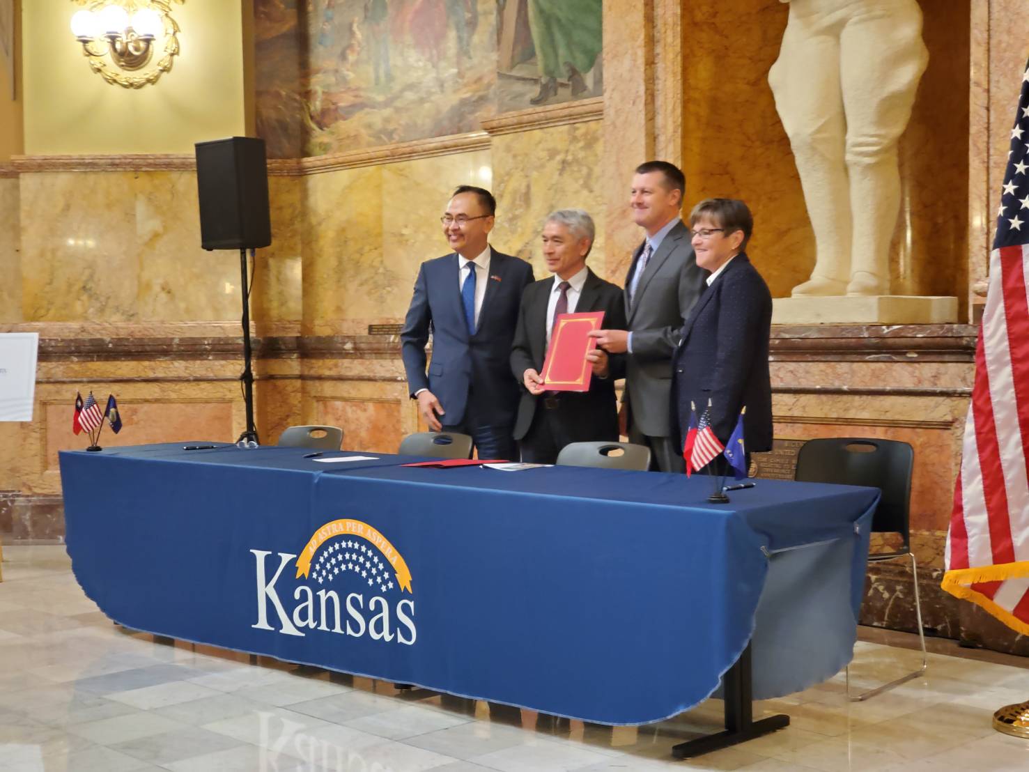 本次與美國相關農產品出口團體簽署價值約37億美元之採購意向書,將在2020至2021年內履行,包括黃豆、玉米、小麥及肉品,簽署儀式另有「美國在台協會」(AIT)主席莫健、執行理事John Norris、聯邦參議員史考特(Rick Scott)、眾議員夏波(Steve Chabot)、薛曼(Brad Sherman)等共7位參議員,15位眾議員到場,上述官員及國會議員對我團到訪及採購美國農產品之善意表示歡迎、感謝。