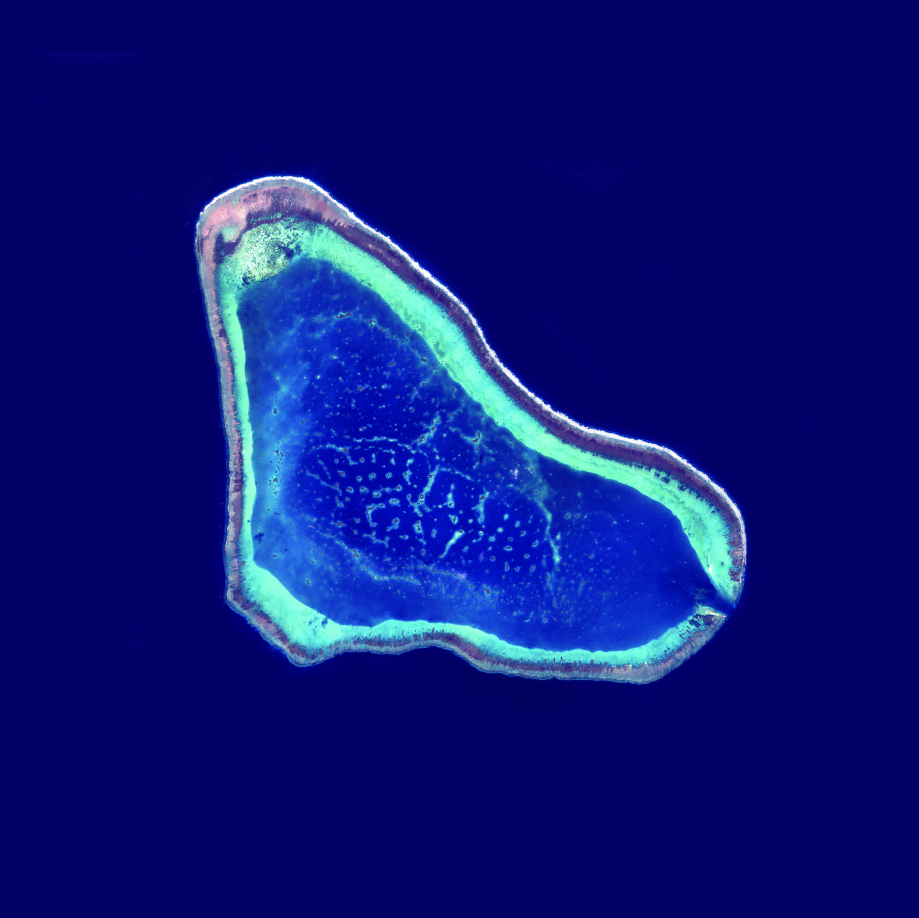 中沙群島黃岩島(民主礁)露出水面外,全為隱沒海水下的珊瑚礁。