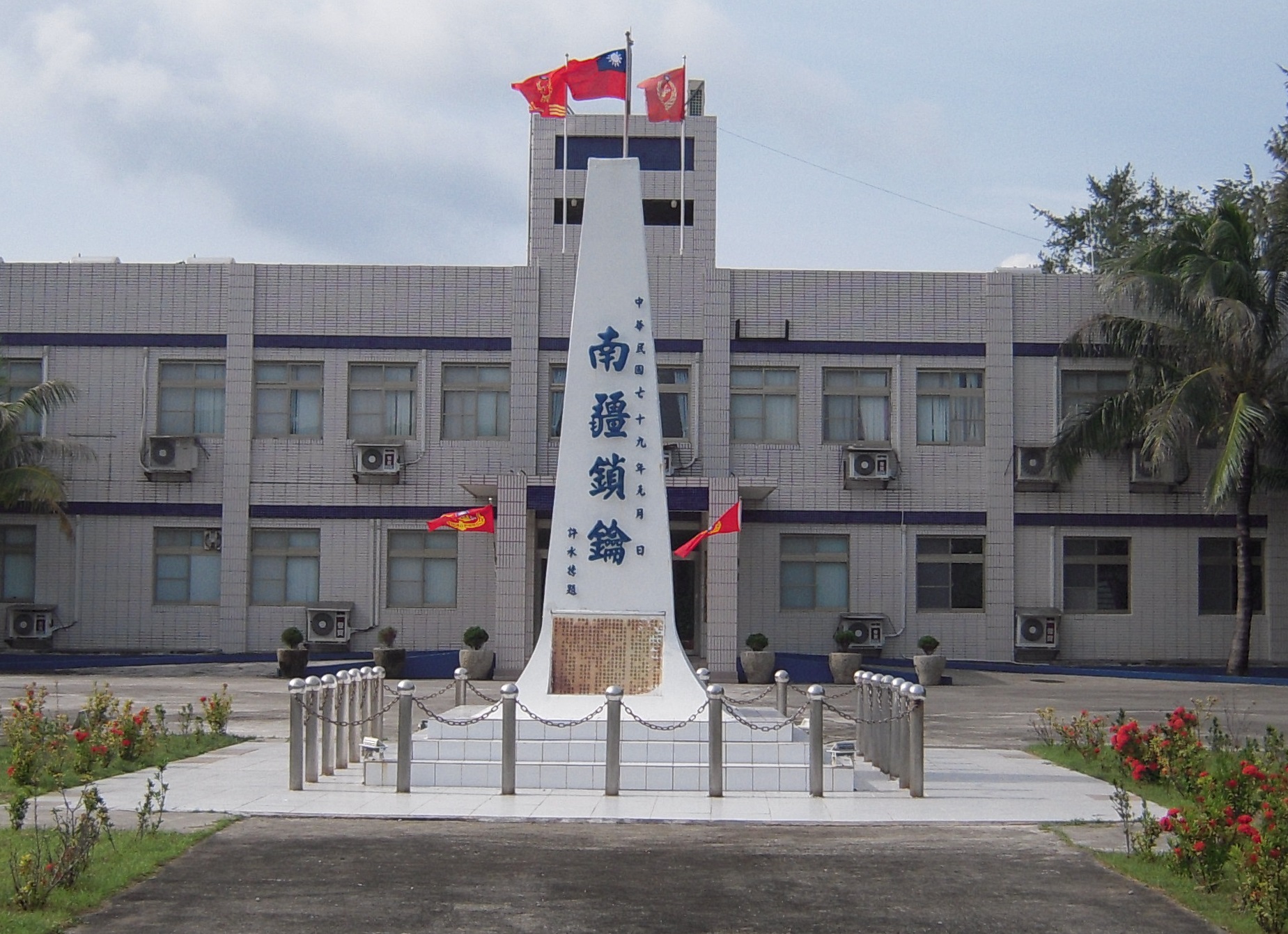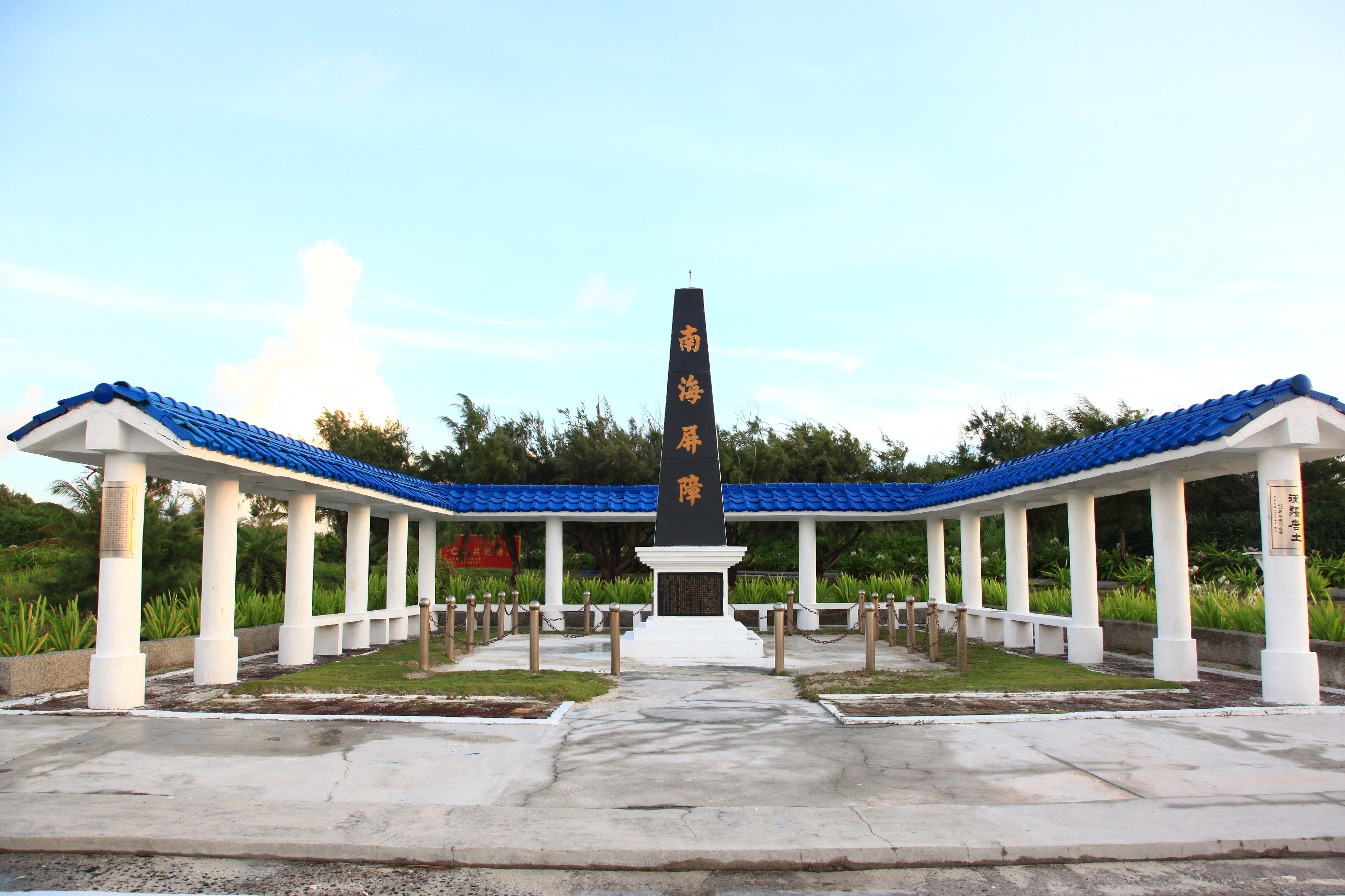 東沙島上豎立「南海屏障」國碑。