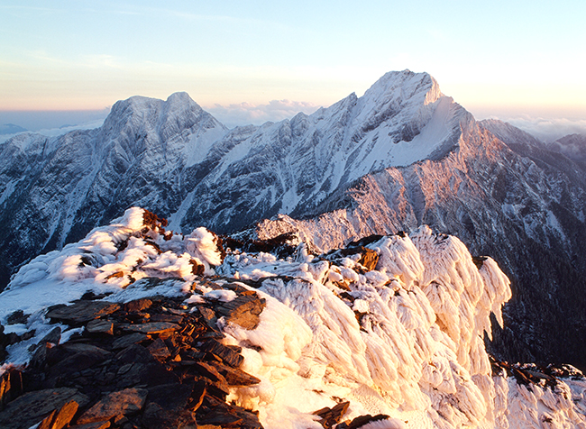 玉山山脈主峰高3,952公尺,為東亞第一高峰,冬天白雪皚皚。(圖/外交部提供)