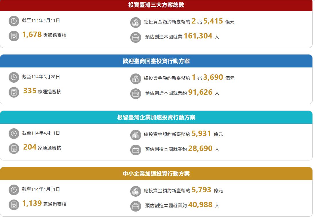 「投資臺灣三大方案」提供土地租金優惠、專案貸款等協助措施,統一由投資臺灣事務所擔任服務窗口,讓臺商、臺灣在地企業能快速、安心投資。(圖/擷自投資臺灣事務所網頁)