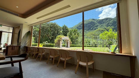 東部第一家「山林製造」品牌概念店「山林製造 X 虎比公寓知本館」位於知本國家森林遊樂區,店內大跨距觀景窗讓旅人從室內就能眺望整座森林。(圖/農業部提供)
