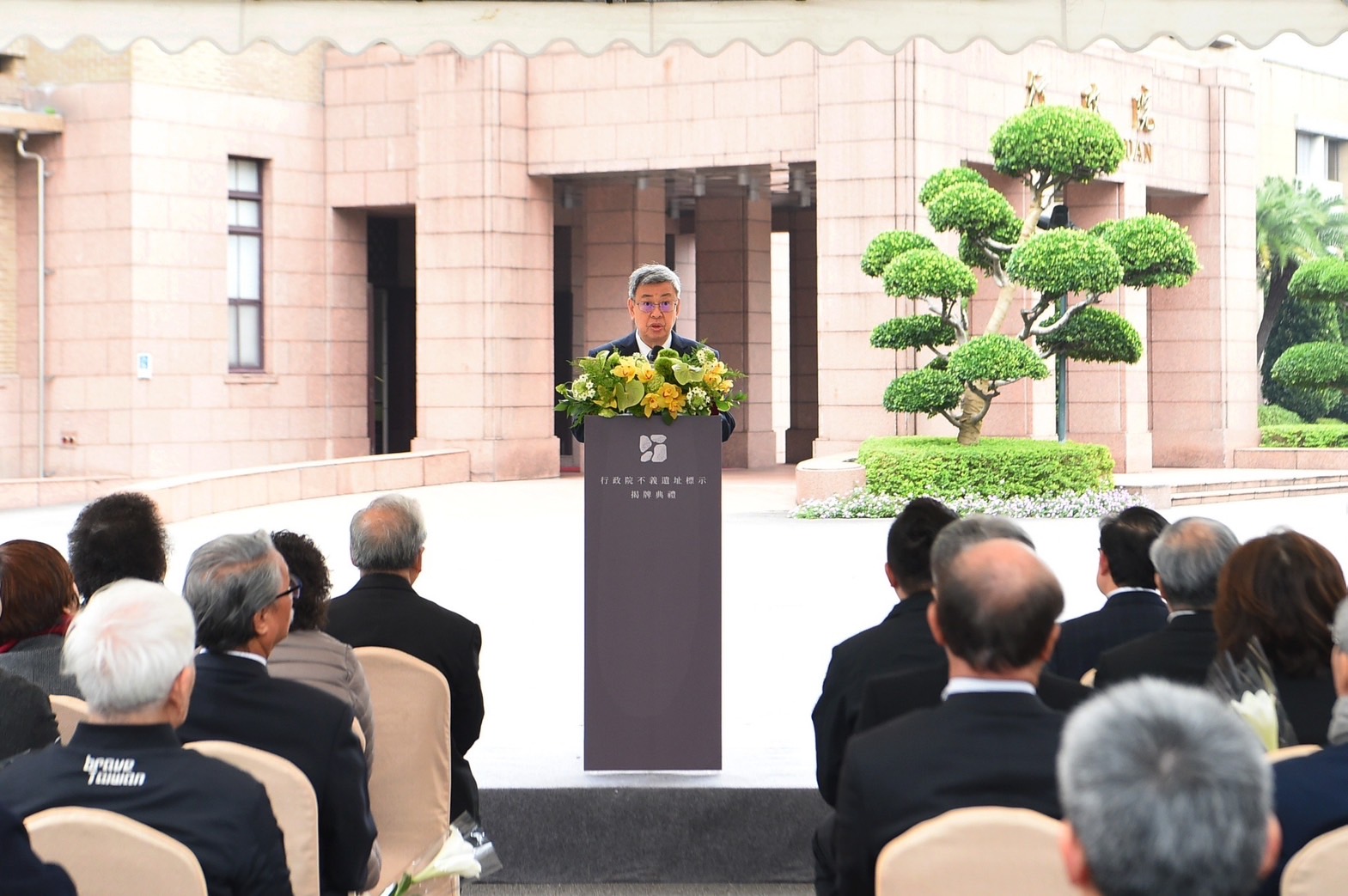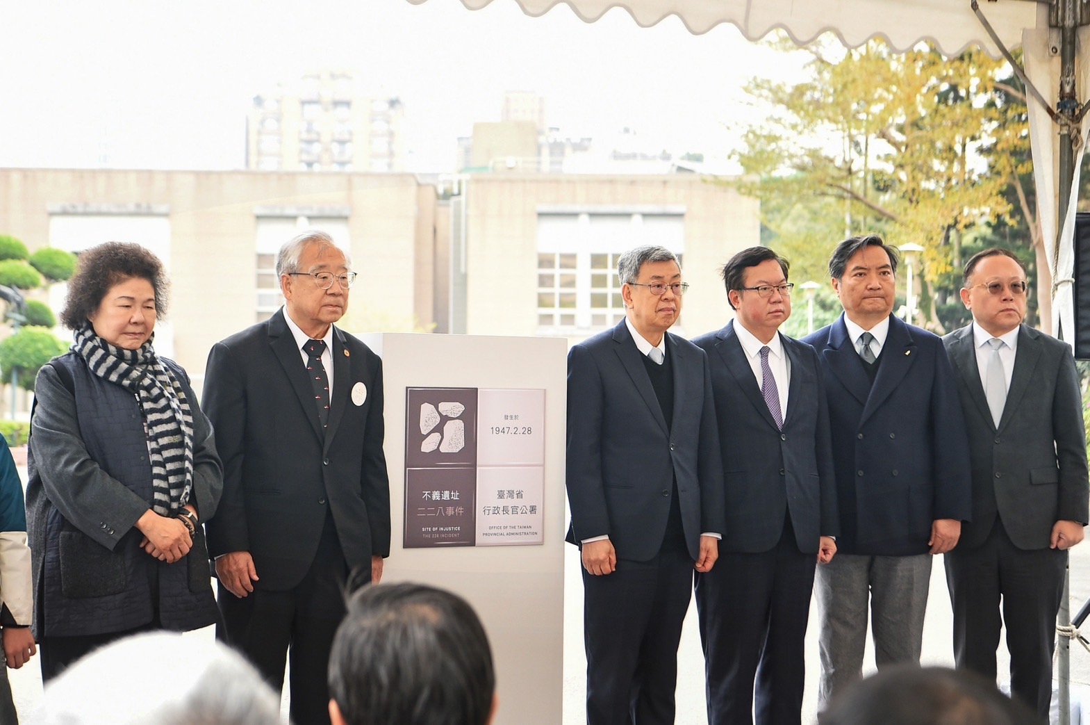 行政院長陳建仁今(26)日出席「不義遺址標示揭牌典禮」時表示,行政院現址於1947年二二八事件發生時,為「臺灣省行政長官公署暨廣場」,是該事件的重要歷史現場之一,並於2022年依據《促進轉型正義條例》審定公告為不義遺址。今日行政院相當慎重地率先示範設置3處不義遺址的標示,透過保留過往不義的歷史痕跡,彰顯政府承諾「永不再犯」的決心,並將不義遺址轉變為國人傳承民主記憶的教育基地,讓大家了解臺灣的自由、民主、法治與人權保障,需要大家共同守護,政府也將持續戮力為臺灣民主打造更加和平與公義的樂土,逐步穩健向前行。